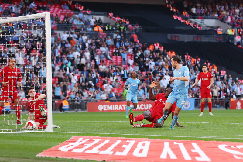 Phút 90 (Bàn thắng 3-2, Bernardo Silva): Mahrez băng xuống tốc độ rồi sút qua chân Alisson. Bóng bật ra đúng tầm Bernardo Silva lao vào đá bồi rút ngắn tỷ số xuống còn 2-3.