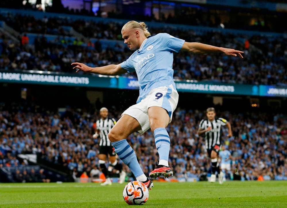 Haaland chưa có cảm giác bóng tốt và cũng bị hậu vệ Newcastle kèm sát ở phía trên.