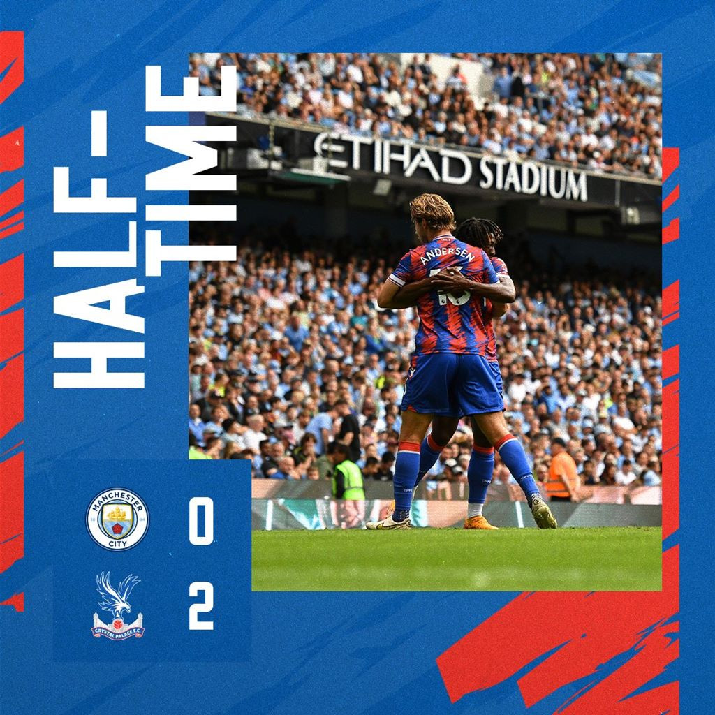Hiệp một kết thúc với tỷ số rất bất ngờ 2-0 tạm nghiêng về phía đội khách Crystal Palace.
