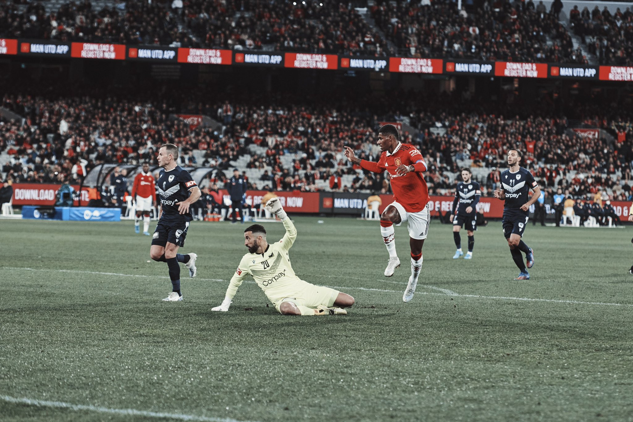 MU dàn xếp tấn công ấn tượng bên cánh phải. Bruno Fernandes trả ngược vào trong cho McTominay đá nối ngay nhưng bóng chạm hậu vệ Melbourne Victory đi hết đường biên ngang.