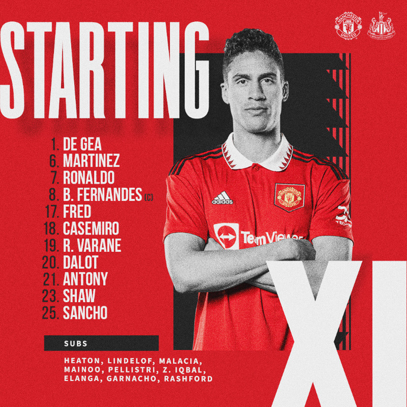 MU: De Gea, Shaw, Varane, Martinez, Dalot, Casemiro, Fred, B.Fernandes, Sancho, Ronaldo (Rashford 71'), Antony.