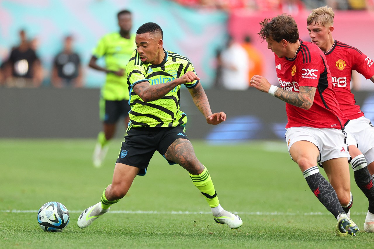Cả MU vs Arsenal cùng tung ra sân đội hình tương đối mạnhTrận đấu diễn ra với thế trận đôi công hấp dẫnPhút 30, Bruno Fernandes nhận bóng từ đồng đội bên cánh phải, anh đi vài nhịp trước khu tung ra cú dứt điểm từ ngoài vòng cấm quyết đoán đánh bại thủ thành RamsdaleTân thủ quân của MU ghi bàn đẹp mắtSau đó chỉ 7 phút, hậu vệ Arsenal mắc sai lầm để Sancho thoát xuống dứt điểm rất căng nhân đôi cách biệt cho "Quỷ đỏ"Arsenal nỗ lực tấn công tìm bàn gỡTuy nhiên, các chân sút bên phía Pháo thủ như Martinelli hay Jesus vào sân từ phút 59 không một lần tỏa sángArsenal hoàn toàn bế tắc trước MUMU đánh bại Arsenal 2-0 trong 90 phút chính thứcSau khi 90 phút kết thúc, hai đội vẫn phải bước vào loạt đá luân lưu do quy định của giải giao hữu trên đất Mỹ.Đoàn quân của HLV Erik ten Hag tiếp tục giành chiến thắng với tỷ số 5-3. Đây là trận thắng thứ 3 liên tiếp trong loạt trận giao hữu tiền mùa giải của MU