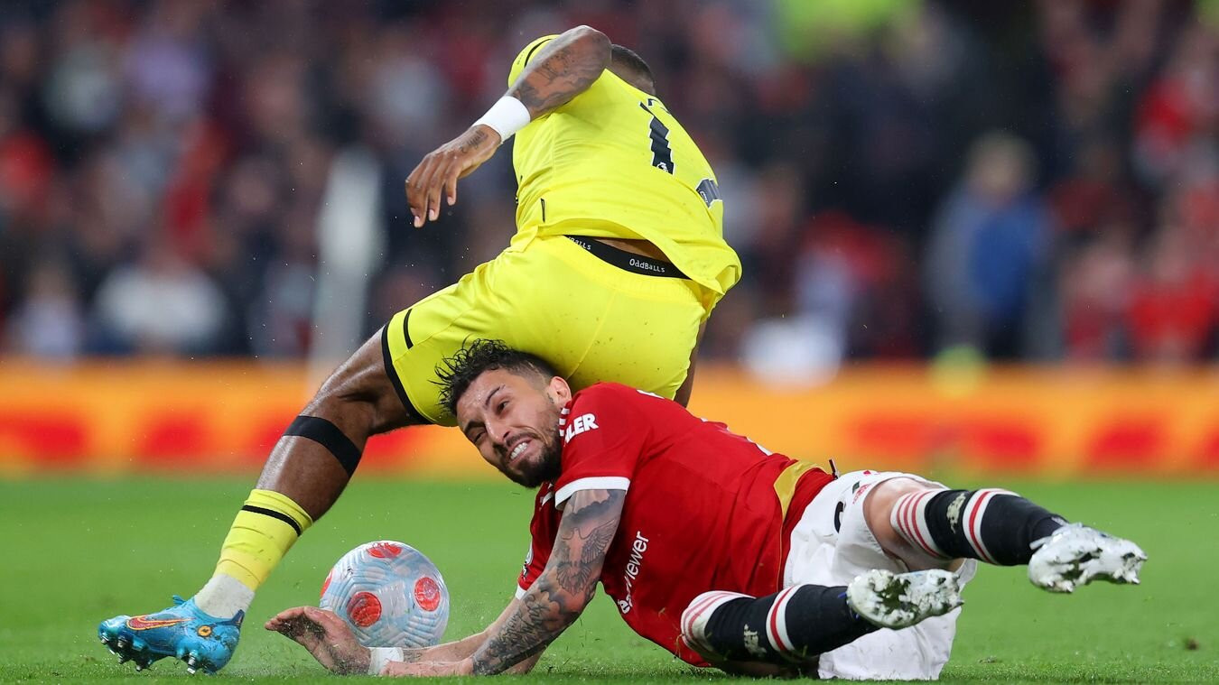 Brentford cố gắng dồn đội hình lên hòng tìm kiếm bàn gỡ. Bóng vừa chạm tay Telles trong vòng cấm MU nhưng không có penalty cho đội khách.