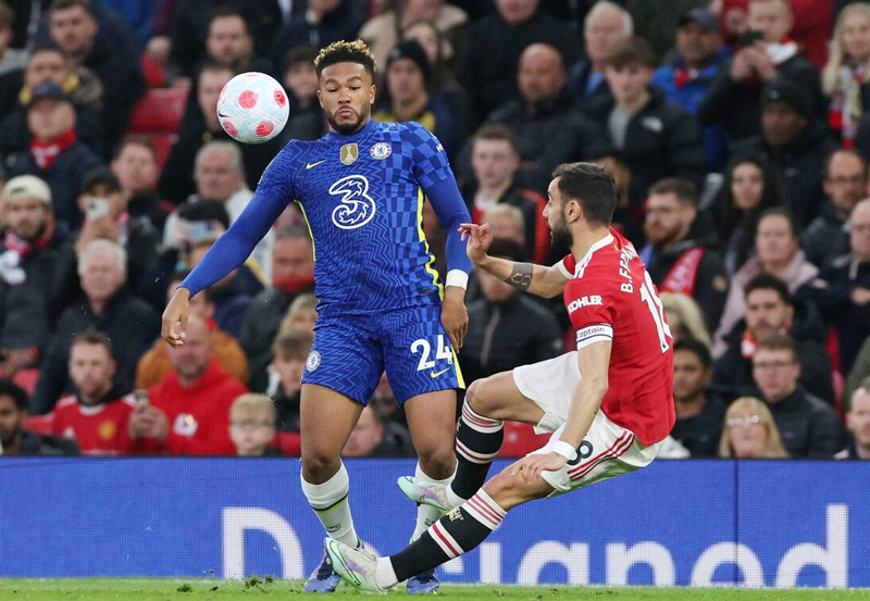 Chelsea phối hợp phản công cực hay. Mason Mount đánh gót cho Reece James lao lên cứa lòng chân trái chạm mép ngoài cột dọc. Pha bóng hú vía với CĐV MU.