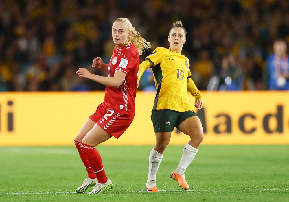 Nữ Australia đang kiểm soát bóng tốt hơn nhưng gặp khó trong việc tìm đường vào khung thành Đan Mạch.