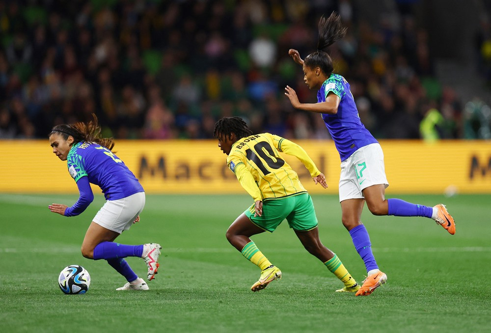 Mải mê tấn công suýt chút nữa Brazil nhận bàn thua. Khadija Shaw bên phía nữ Jamaica bứt tốc rồi dứt điểm đưa bóng đi hơi cao so với khung thành thủ môn Lima da Silva.