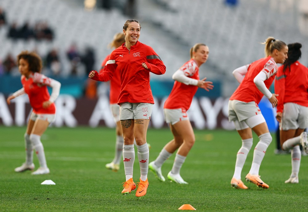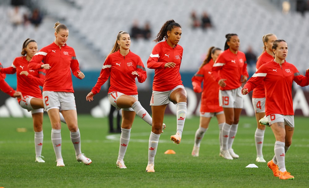 Nữ Thụy Sĩ khởi động trước trận đấu