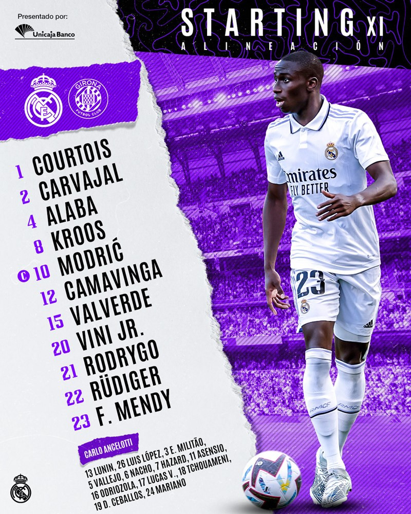 Real Madrid (4-3-3): Courtois, Carvajal, Rudiger, Alaba, Ferland Mendy (Militao 87'), Modric, Camavinga (Asensio 61'), Toni Kroos, Federico Valverde (Mariano Diaz 87'), Rodrygo, Vinicius