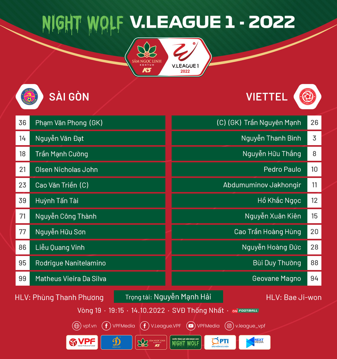 Viettel: Nguyên Mạnh, Thanh Bình, Duy Thường, Hoàng Hùng, Hữu Thắng, Abdumuminov (Tiến Anh, 88’), Hoàng Đức, Khắc Ngọc (Văn Hào, 68’), Xuân Kiên (Tuấn Tài, 77’), Pedro Paulo (Hoàng Minh, 68’), Geovane.