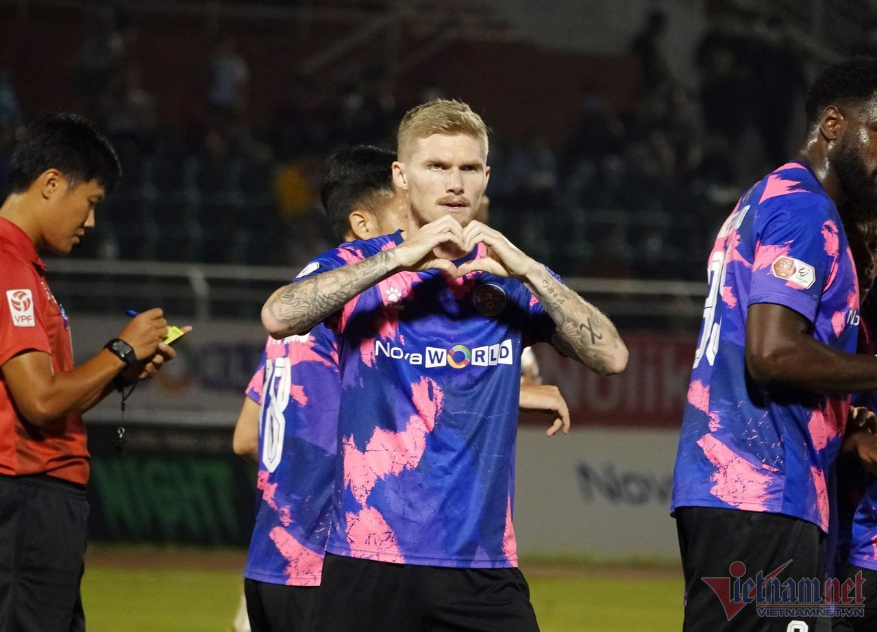 BÀN THẮNG! Sài Gòn 1-0 Viettel (Olsen): Huỳnh Tấn Tài bên phía Sài Gòn bị phạm lỗi thô bạo trong vòng cấm, trọng tài Nguyễn Mạnh Hải lập tức thổi phạt đền cho chủ nhà. Trên chấm 11m, Olsen dễ dàng đánh lừa thủ môn Nguyên Mạnh mở tỉ số cho chủ nhà.