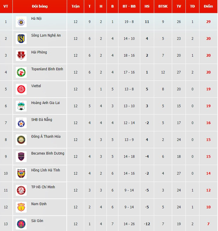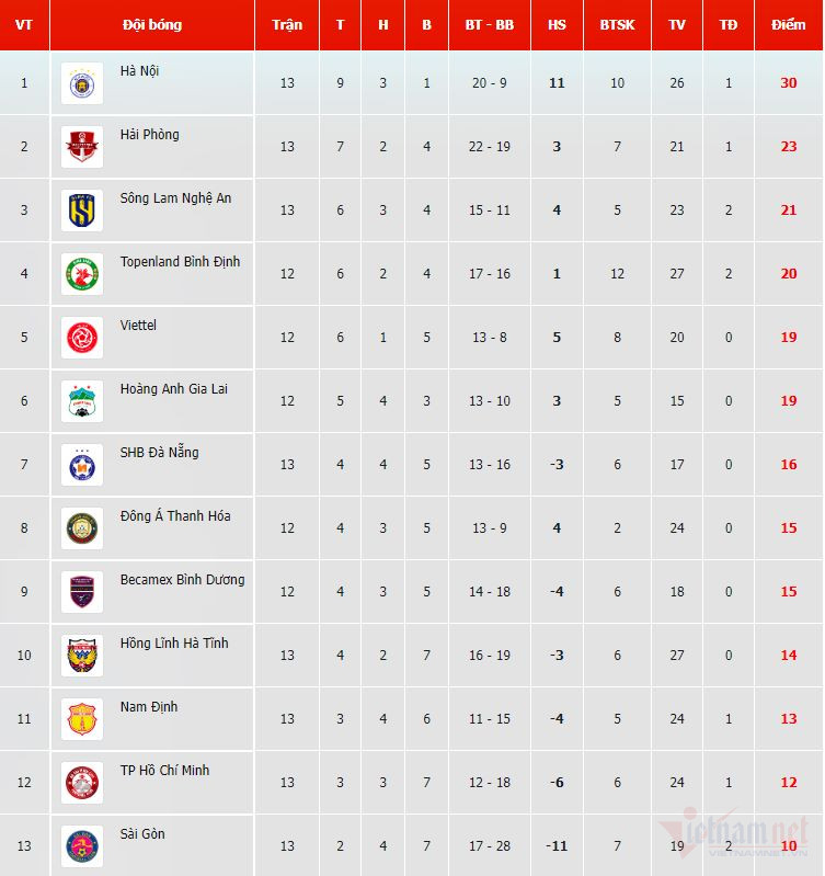 Bảng xếp hạng V-League 2022
