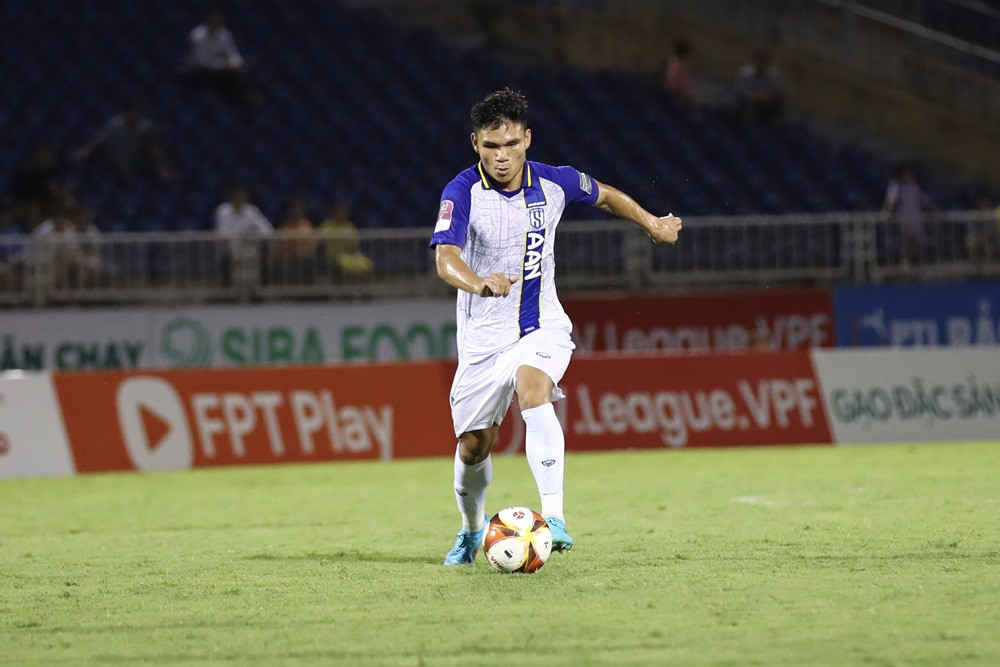 Xuân Tiến đá phạt góc để cầu thủ vào sân thay người Văn Việt đánh đầu đưa bóng đi chệch cột dọc khung thành TPHCM.
