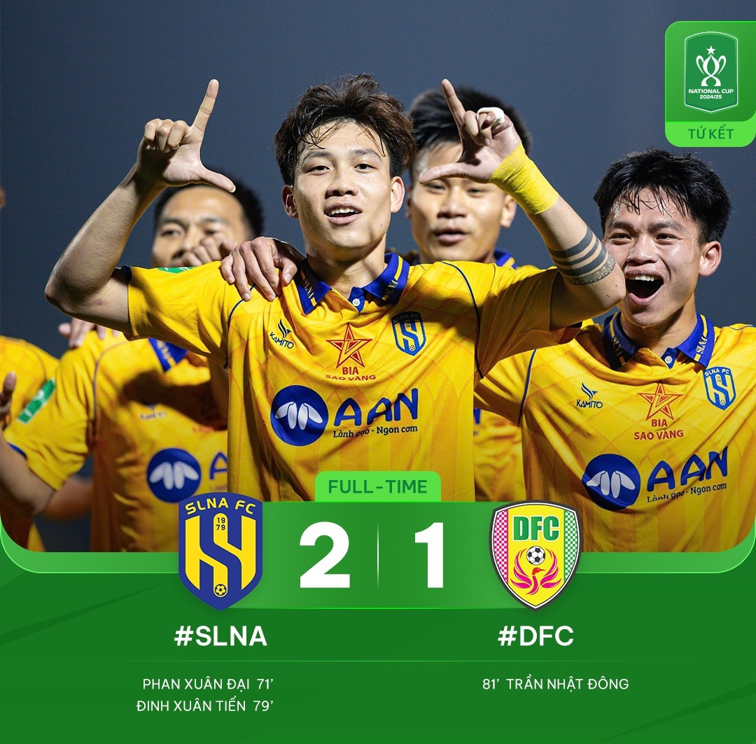 Trận đấu kết thúc với chiến thắng 2-1 dành cho SLNA cùng tấm vé vào bán kết Cúp Quốc gia 2024/25.