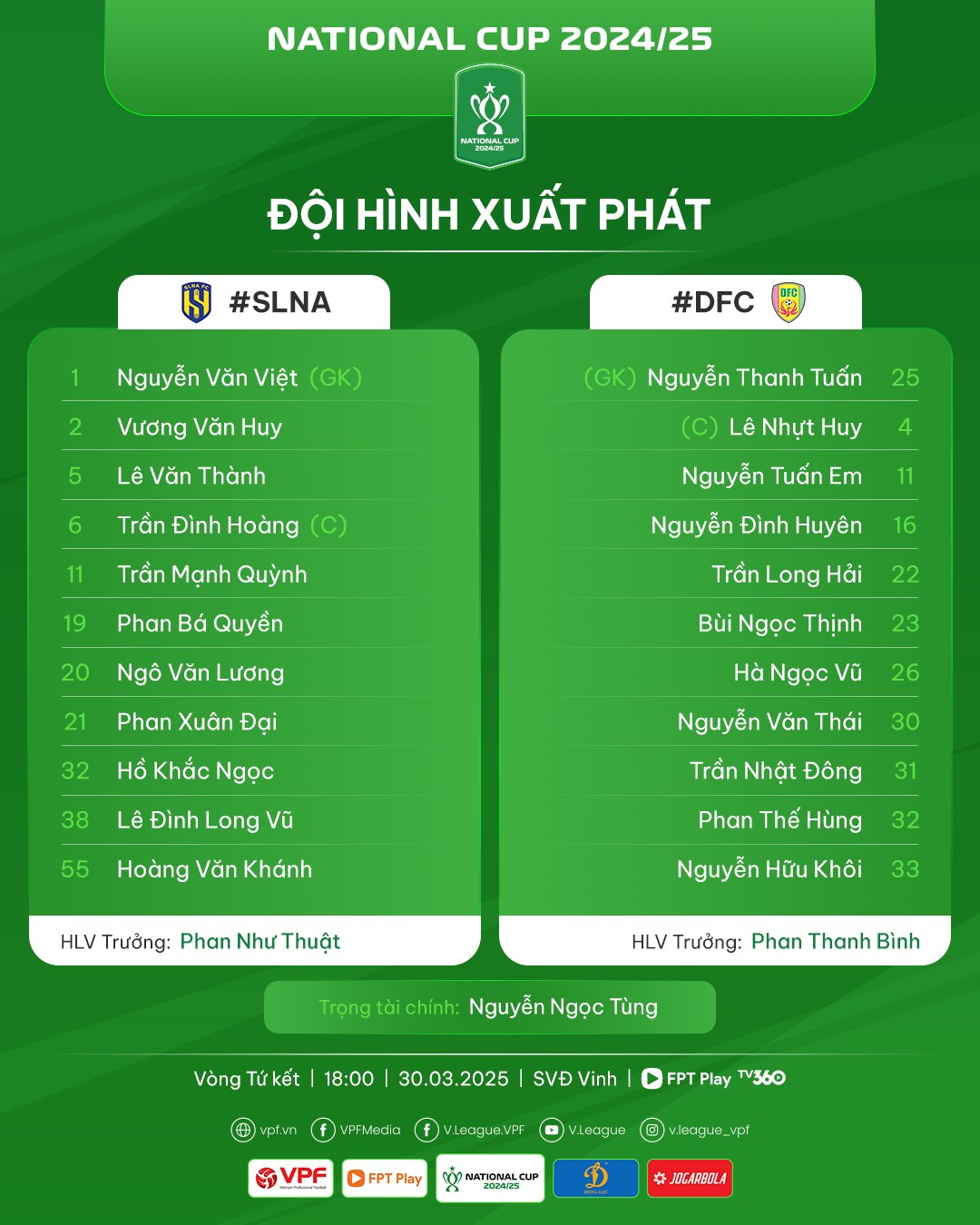 Đội hình xuất phát SLNA vs Đồng Tháp