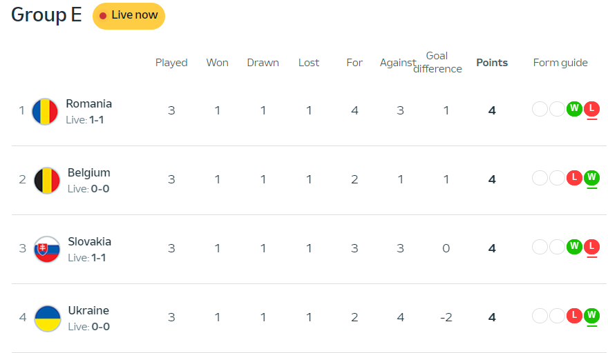 Romania lần đầu tiên trong lịch sử đứng đầu bảng EURO. Trong khi đó, Slovakia đi tiếp với tư cách một trong các đội hạng 3 có thành tích tốt nhất.