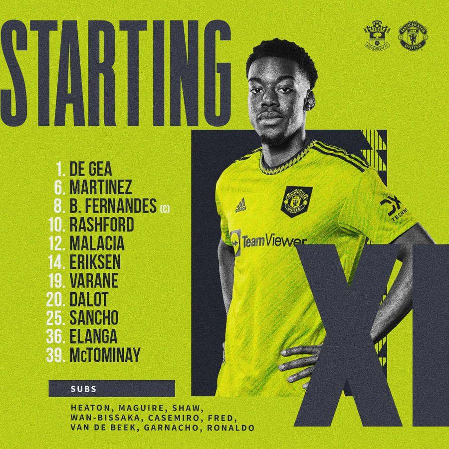 MU: De Gea; Dalot, Varane, L.Martinez, Malacia; McTominay, Eriksen (Fred 90'), Bruno Fernandes; Sancho (Ronaldo 68'), Elanga (Casemiro 79'), Rashford.
