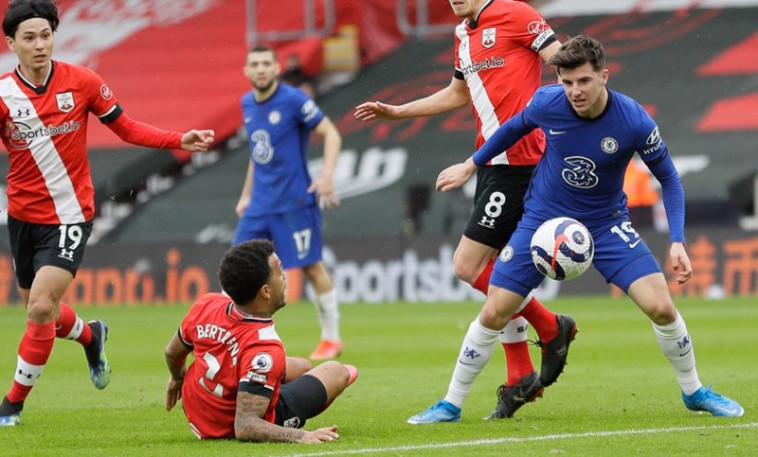 Phút 16 (Bàn thắng 0-2): Đón lõng tình huống phá bóng ra của hậu vệ Southampton, Mason Mount liền nã đại bác sấm sét bằng chân phải nhân đôi cách biệt.