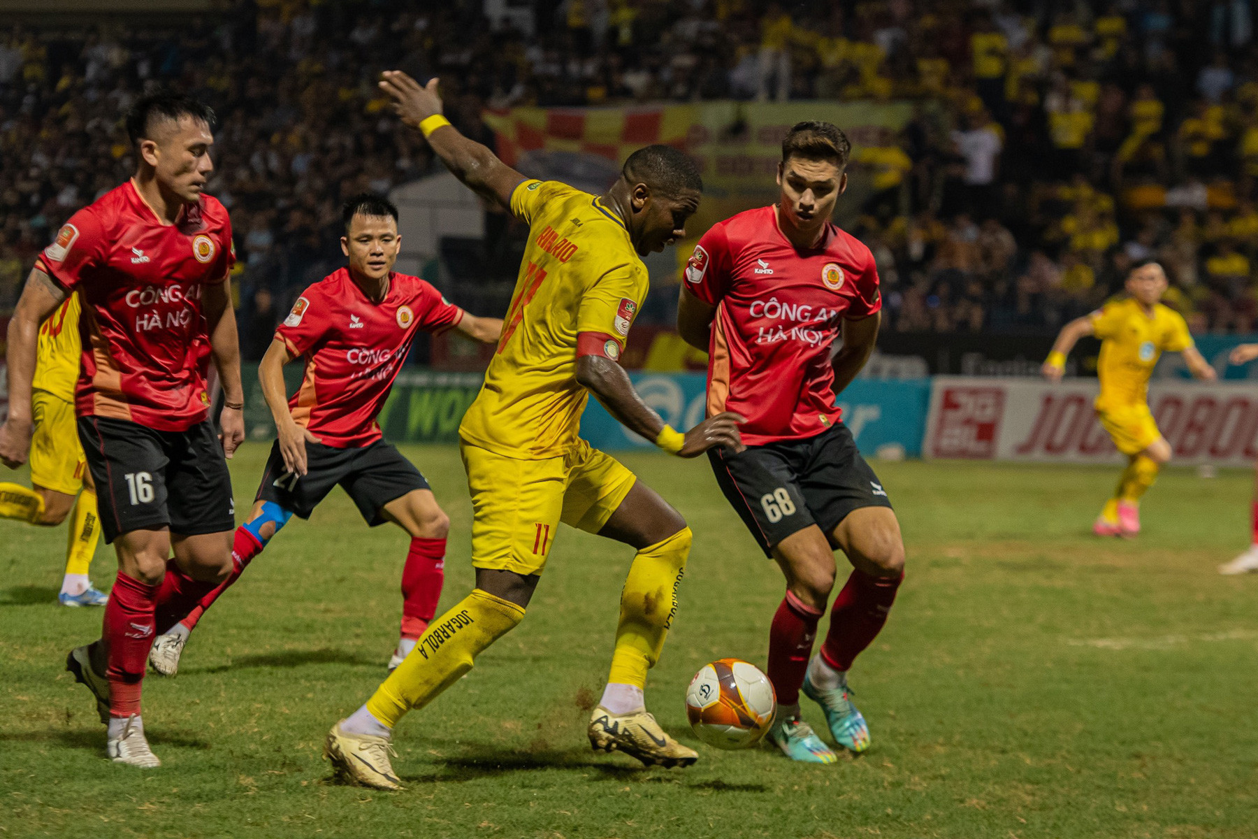 Thành Long phạm lỗi để ngăn A Mít băng lên gây nguy hiểm cho hàng thủ CAHN. Anh phải nhận thẻ vàng sau pha va chạm này.