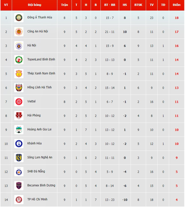 Bảng xếp hạng V-League 2023 vòng 9: Hà Nội FC hòa, Thanh Hóa mừng thầm