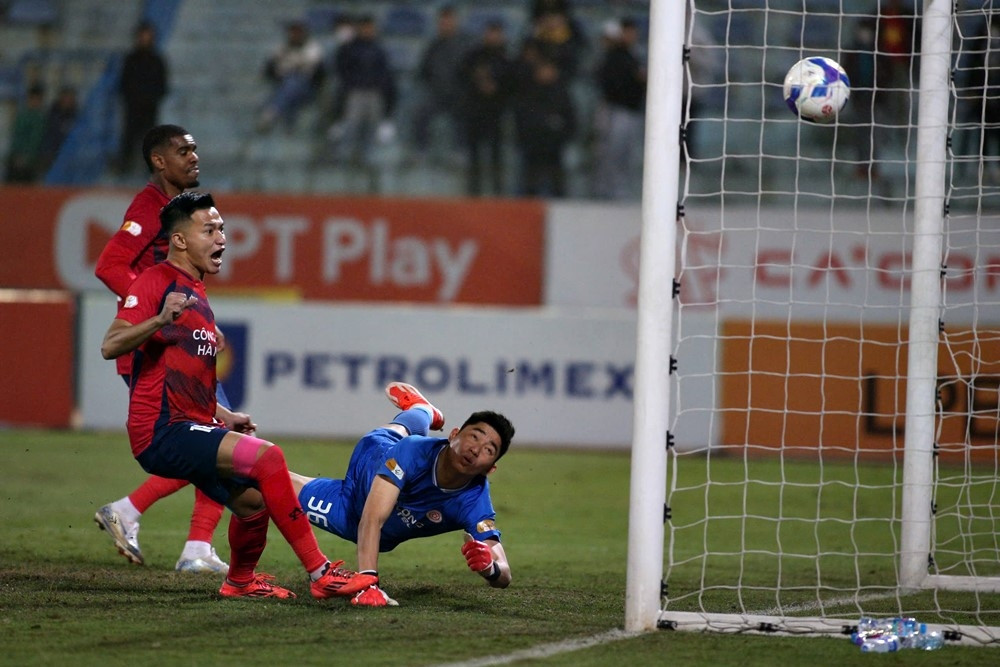 Antonio thực hiện pha vuốt bóng từ khoảng cách gần 30m nhưng không làm khó thủ môn Văn Công.