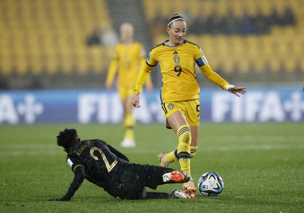 Filippa Angeldal dứt điểm trong vòng cấm nữ Nam Phi đưa bóng chạm tay Hildah Magaia. Các cầu thủ nữ Thụy Điển đòi phạt đền, trọng tài sau khi check VAR xác định cánh tay của cầu thủ Nam Phi để sát người nên không có penalty.