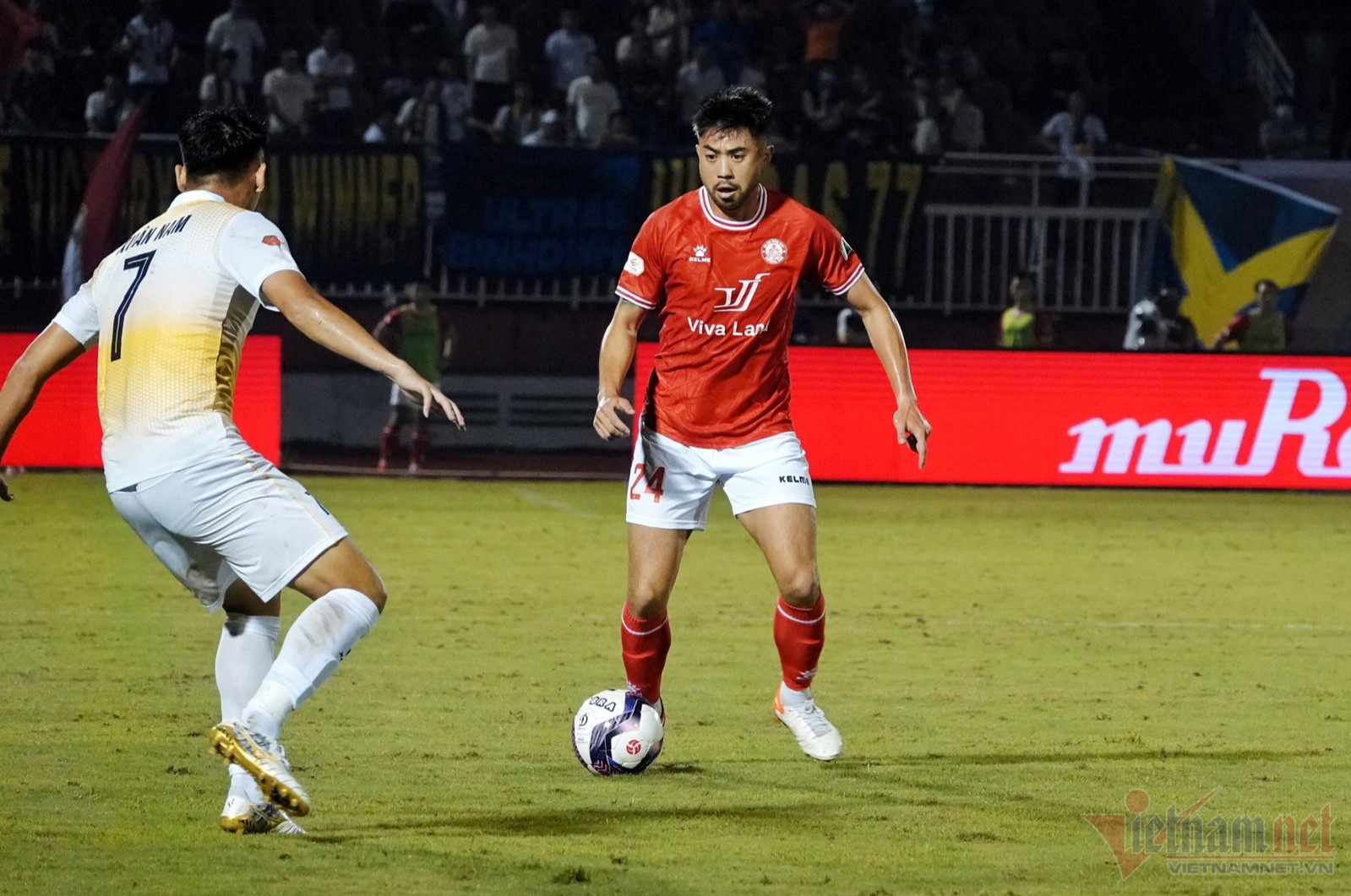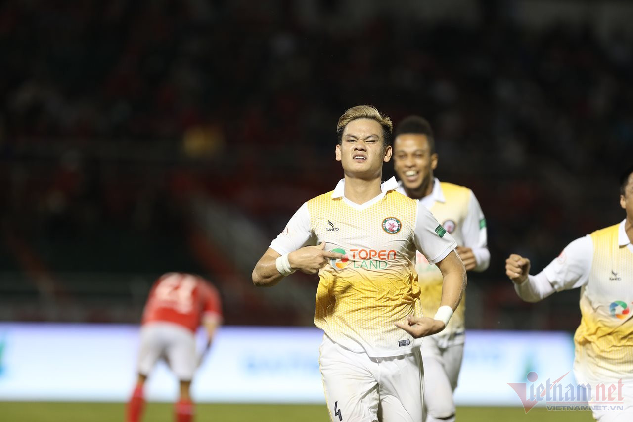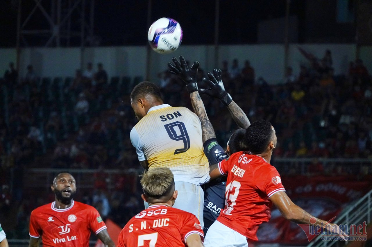 Jermie Lynch bật lên tranh chấp trong vòng cấm tạo cơ hội ngon ăn để Hồ Tấn Tài sút tung lưới TPHCM lần thứ hai chỉ trong ít phút.
