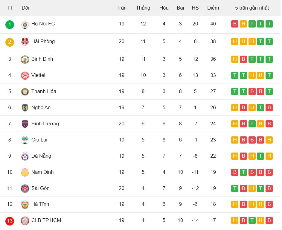 Trận đấu kết thúc với tỉ số hòa 2-2. Kết quả này không đủ giúp TPHCM thoát khỏi vị trí cuối bảng xếp hạng V-League sau vòng 21.