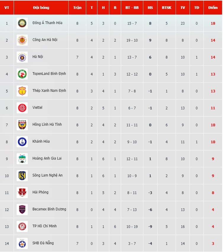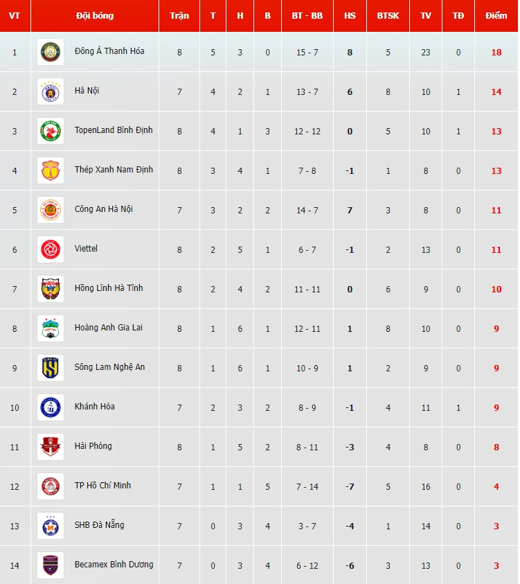 Bảng xếp hạng V-League 2023 vòng 8: HAGL giậm chân tại chỗ