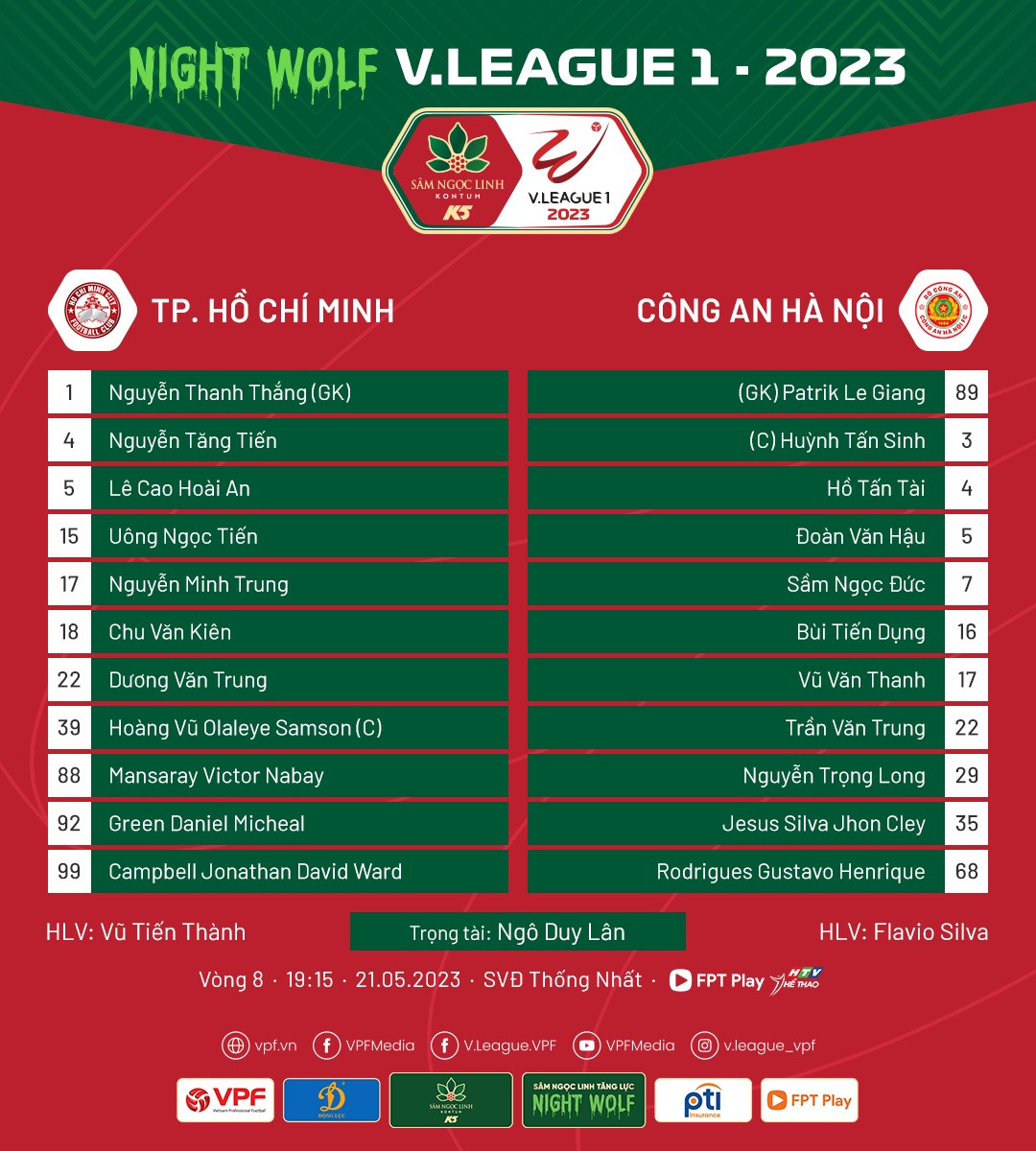 Đội hình xuất phát TP.HCM vs Công an Hà Nội