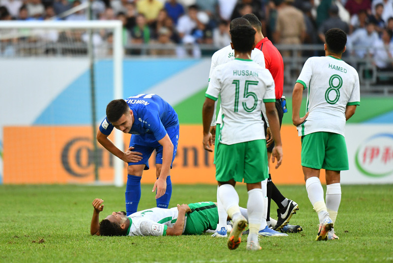 Trận đấu trở nên căng thẳng khi các cầu thủ U23 Saudi Arabia liên tục nằm sân nhằm câu giờ. Trên khán đài, khán giả chủ nhà cũng không giữ được bình tĩnh, ném vật thể lạ xuống sân.