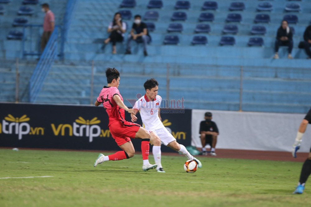Pha thoát xuống nhanh của Văn Tùng, anh đón đường chuyền của đồng đội rồi tung cú sút về góc gần nhưng thủ môn U20 Hàn Quốc đã cản phá xuất sắc.