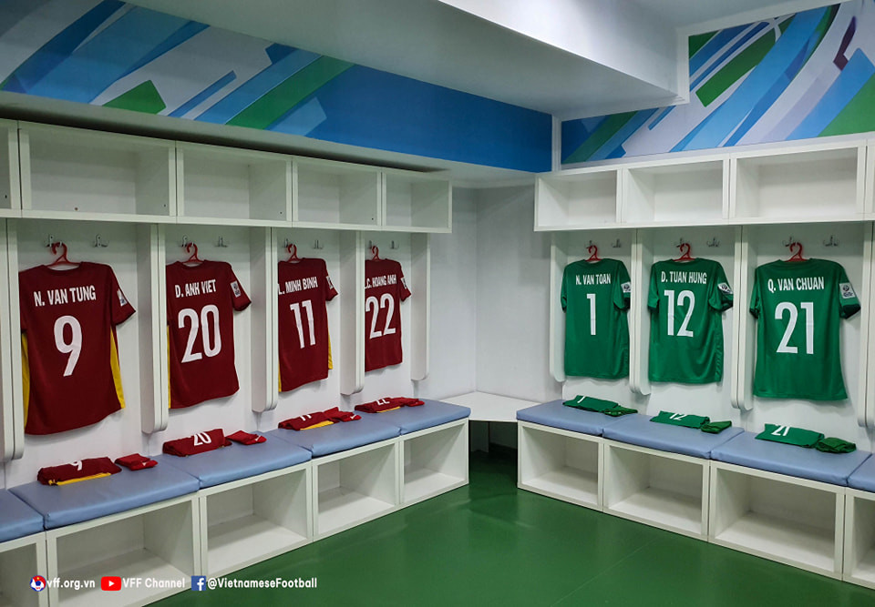 Phòng thay đồ U23 Việt Nam trước trận đấu.