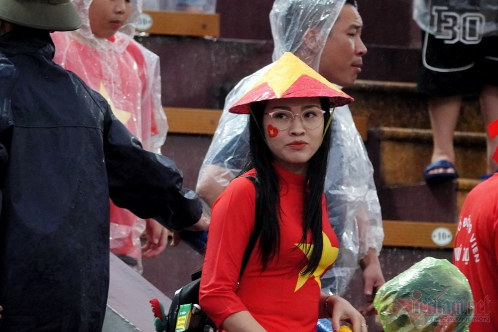 Dù mưa rơi khá dày trên sân Việt Trì nhưng đông đảo khán giả vẫn đổ vào sân để tiếp lửa thầy trò HLV Park Hang Seo.