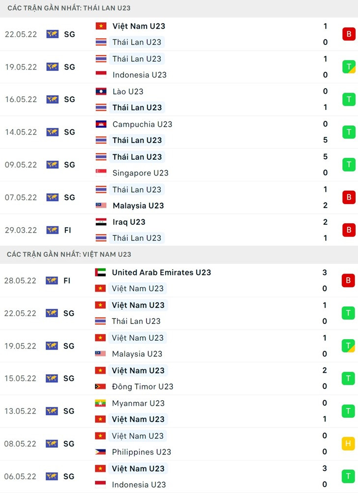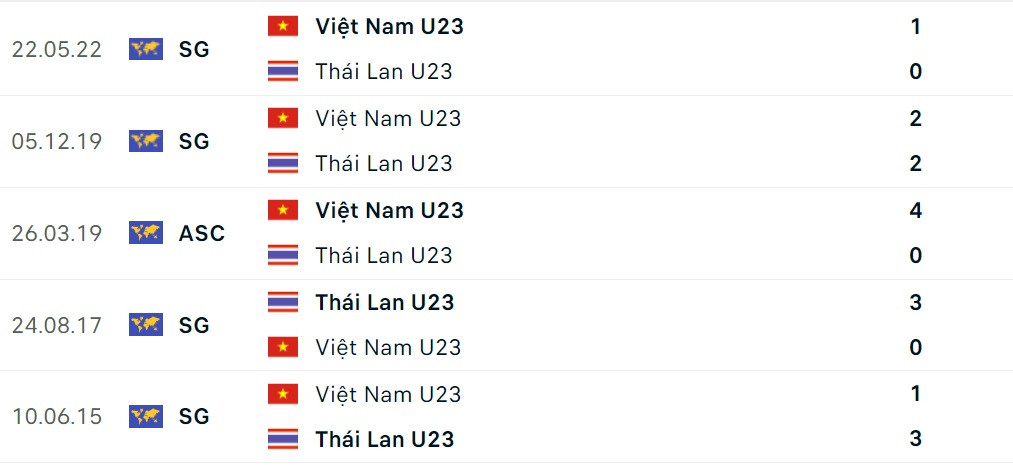 Thành tích đối đầu U23 Việt Nam vs U23 Thái Lan
