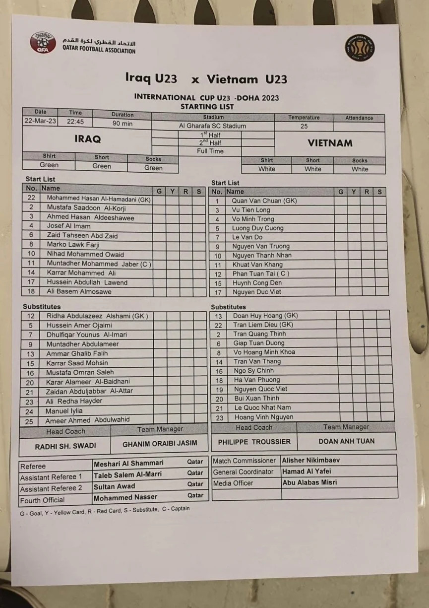Trận đấu kết thúc với thất bại 0-3 của U23 Việt Nam trước U23 Iraq, trong tình thế chơi thiếu người từ hiệp một.