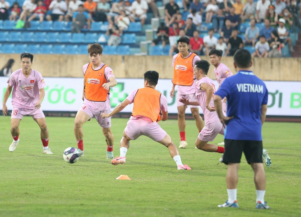 Các cầu thủ Việt Nam khởi động trước trận đấu. Ảnh: Song Ngư
