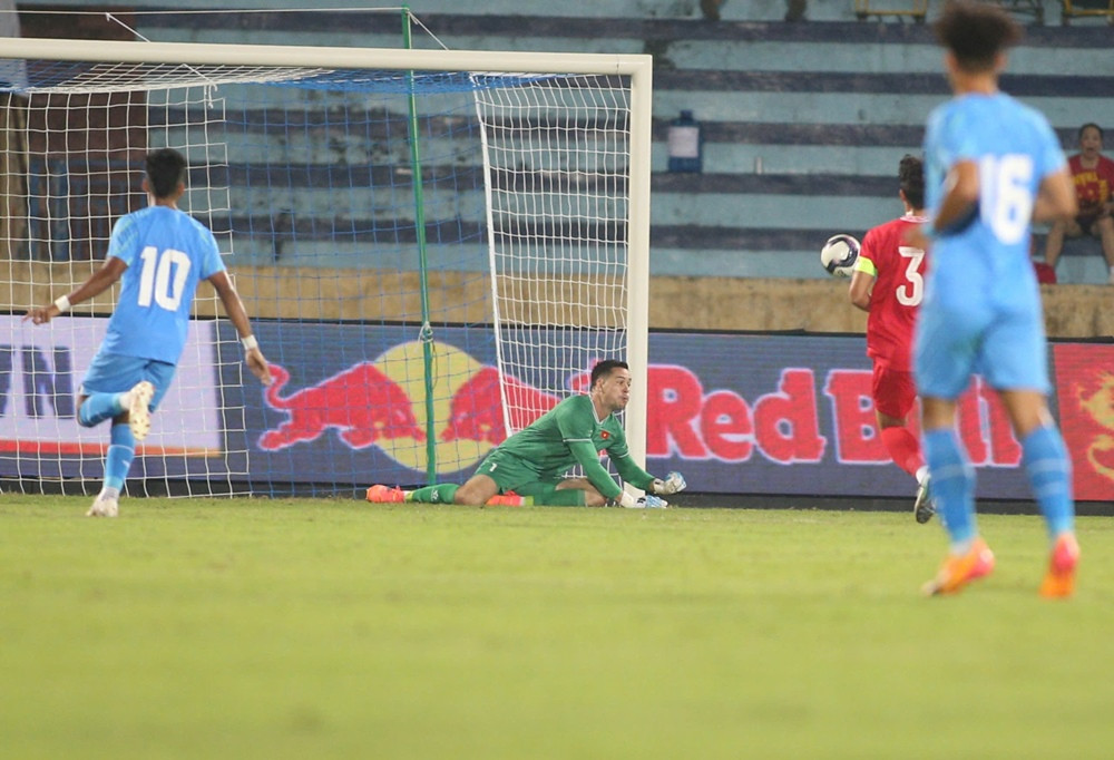 Nguyễn Filip cản phá chính xác cú 'nã đại bác' tầm xa của cầu thủ Ấn Độ.