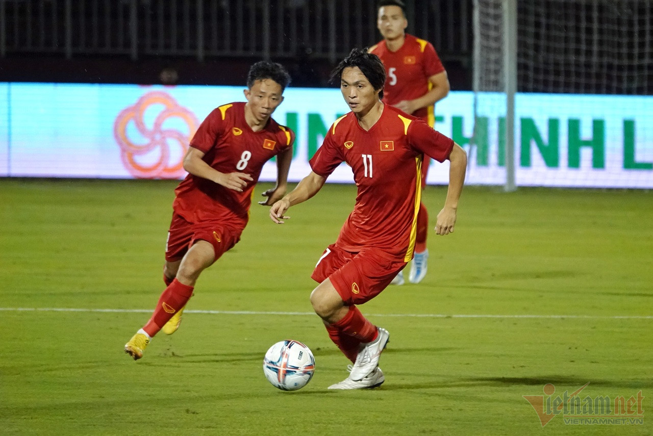 HLV Park Hang Seo rút Nhâm Mạnh Dũng ra sân và tung thủ quân U20 Việt Nam Khuất Văn Khang vừa trở về từ Indonesia vào thế chỗ.