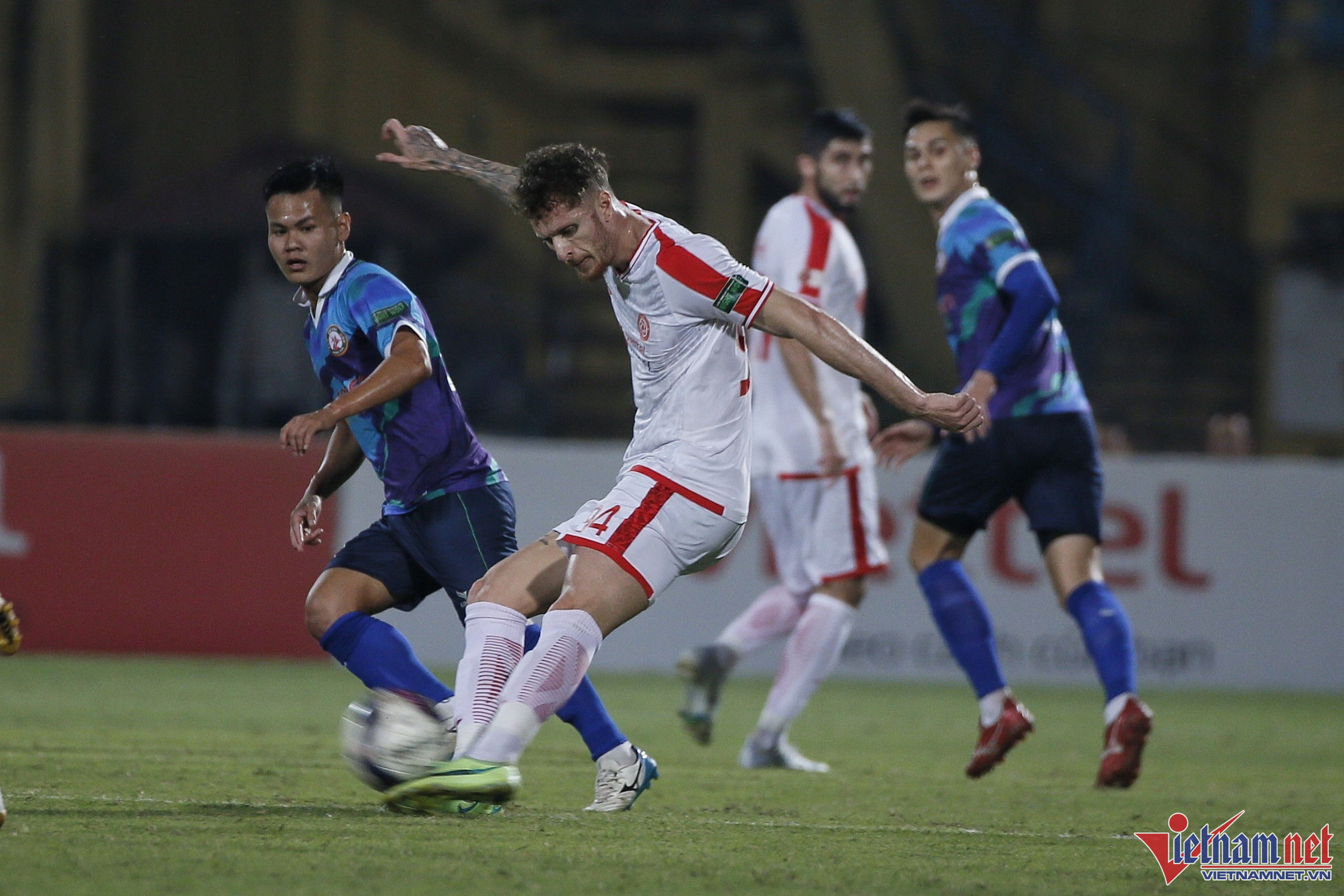 Cột dọc! Mạc Hồng Quân băng lên rất nhanh đá một chạm từ ngoài vòng cấm, Nguyên Mạnh chôn chân đứng nhìn nhưng bóng tìm đến cột dọc đội chủ nhà Viettel.