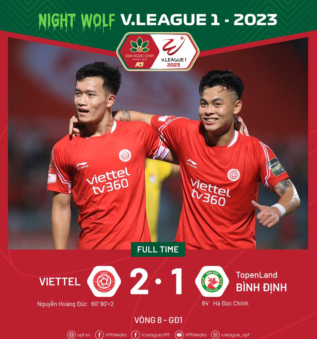 Viettel: Hoàng Đức (60'), Schmidt (90'+2, phản lưới)