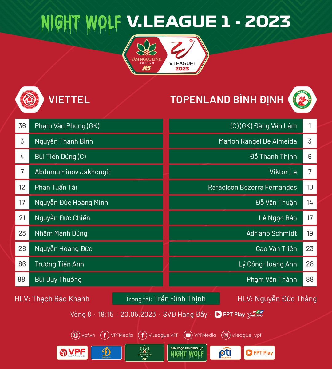 Đội hình xuất phát Viettel vs Bình Định