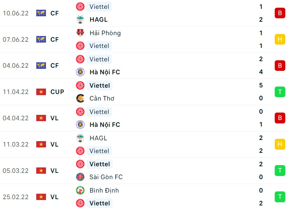 Viettel: Paulo (33', 40', 70'), Hoàng Minh (45'), Nhâm Mạnh Dũng (82')