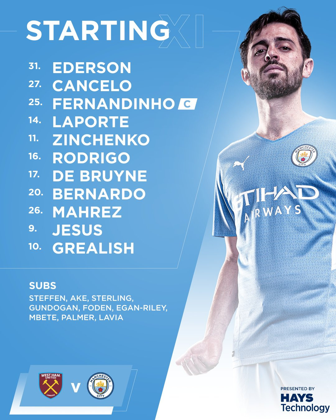 Man City (4-3-3): Ederson, Cancelo, Fernandinho, Laporte, Zinchenko, Rodri, Bernardo Silva, De Bruyne, Mahrez, Grealish, Jesus.