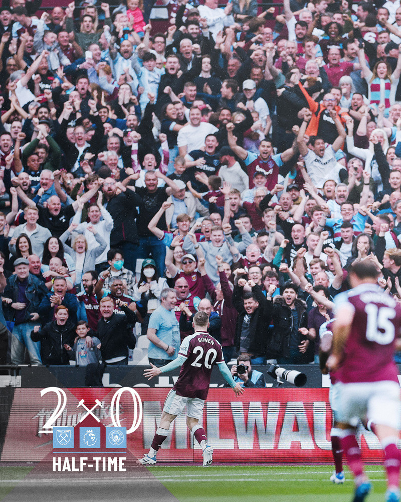 Bàn thắng (1-0, Bowen): Từ đường chuyền đẳng cấp của Fornals, Bowen phá bẫy việt vị băng xuống loại bỏ thủ thành Ederson rồi đá vào lưới trống mở tỷ số.
