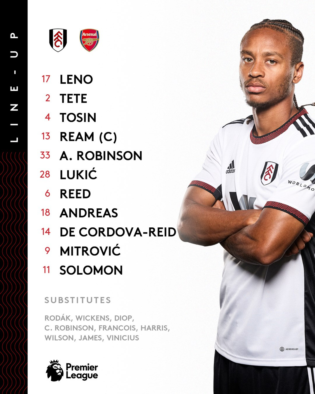 Fulham: Leno; Tete, Tosin, Ream, Robinson; Reed, Lukic; Cordova-Reid, Pereira, Solomon; Mitrovic.