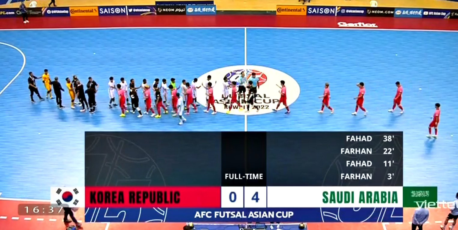 Không những vậy, ĐT futsal Hàn Quốc còn phải nhận thêm hai bàn thua nữa.