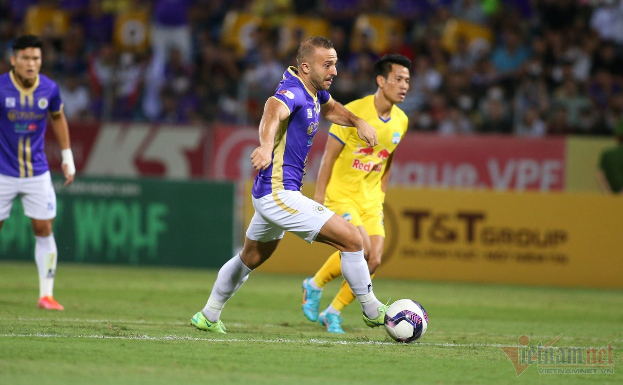 Mujan tạt bổng từ cánh phải sang để đội trưởng Văn Quyết dễ dàng đệm bóng cận thành đánh bại thủ môn Tuấn Linh mở tỷ số trận đấu.