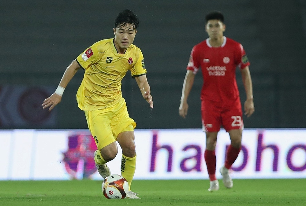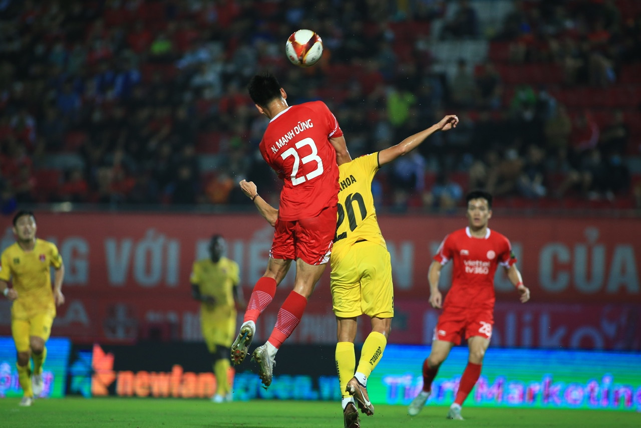 Xuất phát từ pha phản công nhanh của Viettel, Nhâm Mạnh Dũng mở biên cho cầu thủ vào sân thay người Danh Trung thoát xuống dứt điểm đưa bóng đập vào xà ngang khung thành Hải Phòng bật ra.