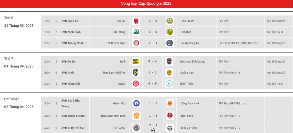 Trận đấu kết thúc với chiến thắng ngược dòng 3-1 dành cho các cầu thủ CAHN. Văn Hậu và các đồng đội giành quyền vào vòng 1/8 Cúp Quốc gia 2023.