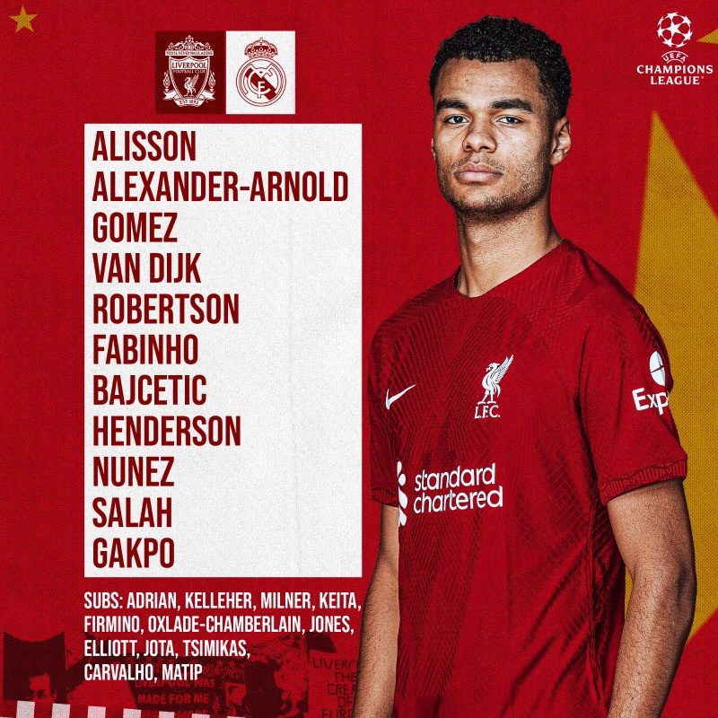 Liverpool: Alisson; Alexander-Arnold, Gomez, Van Dijk, Robertson; Bajcetic, Fabinho, Henderson; Salah, Gakpo (Firmino 64'), Nunez (Jota 64').